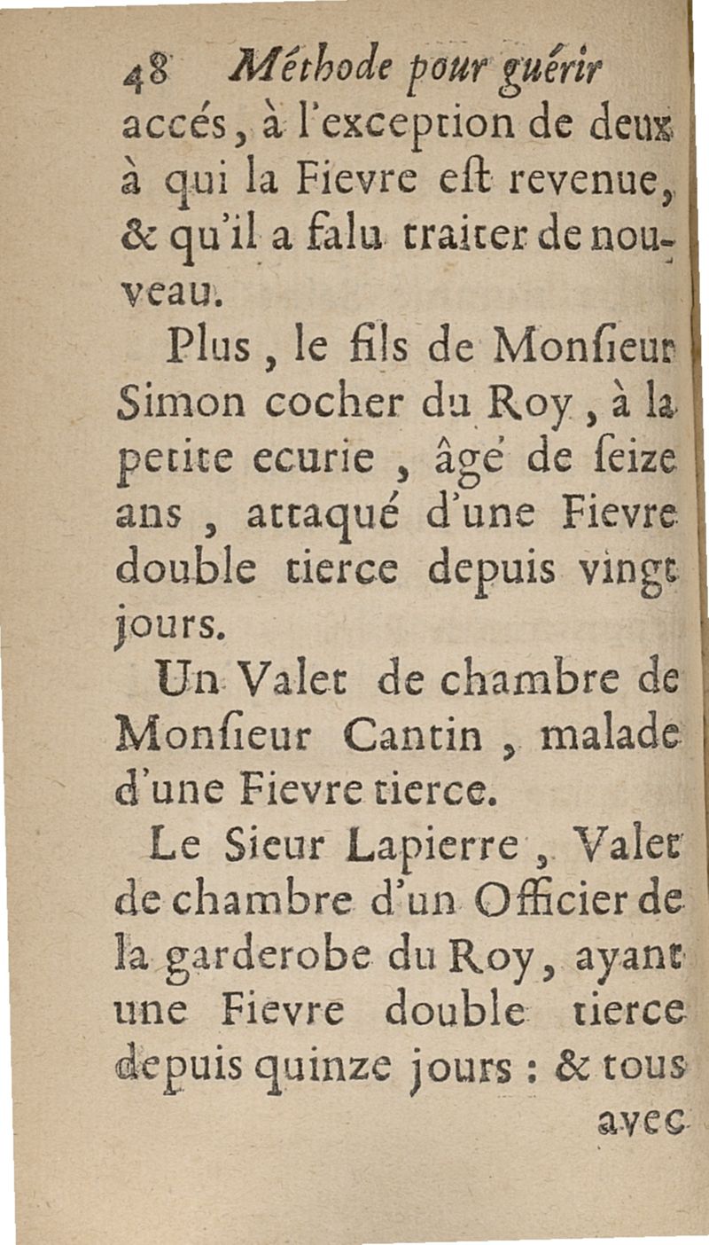 Methode pour guerir toute sorte de fievres, sans rien faire prendre par la bouche. Découverte et donnée au Roy...