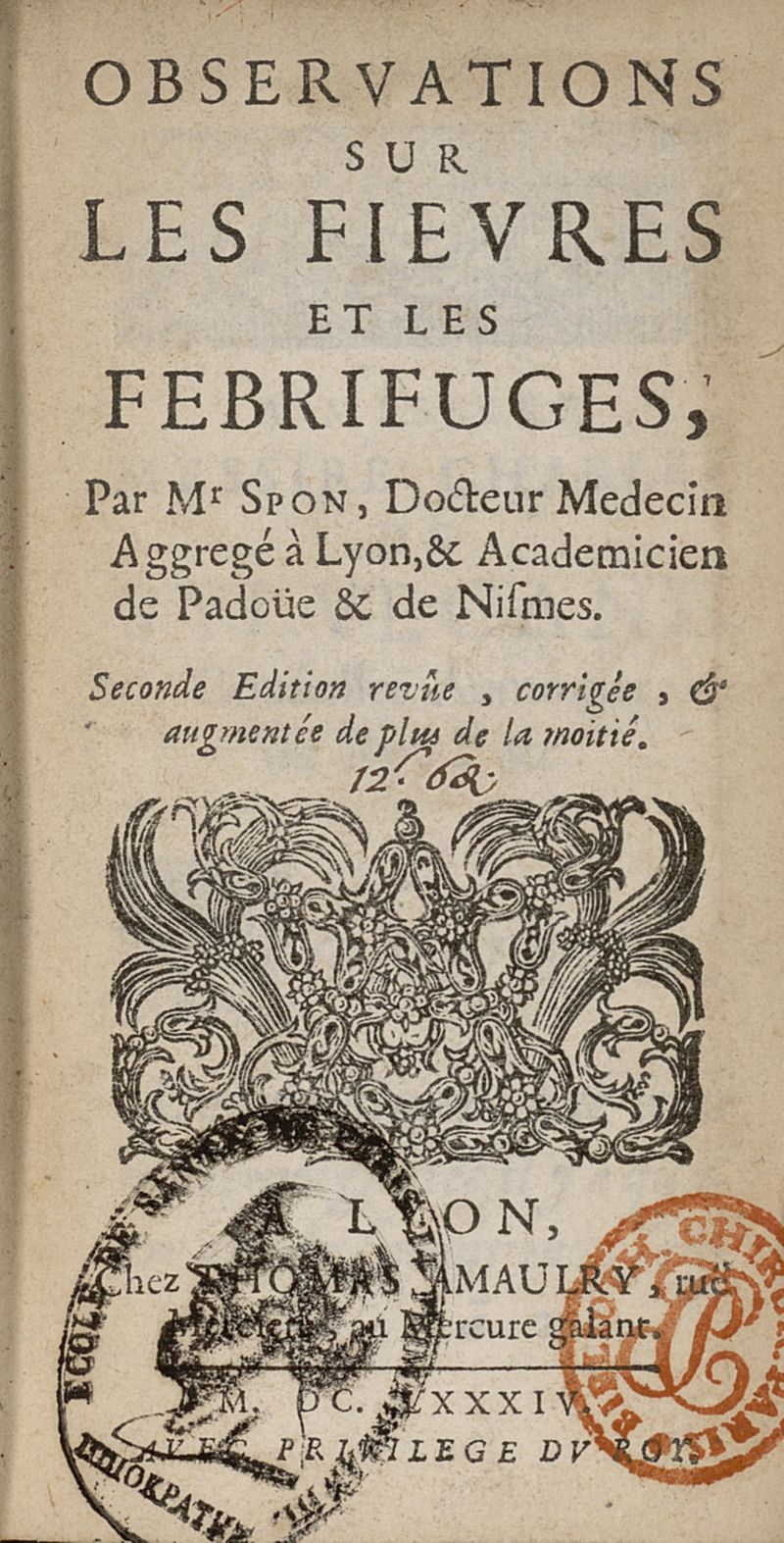 A Lyon, chez Thomas Amulry, 1684.