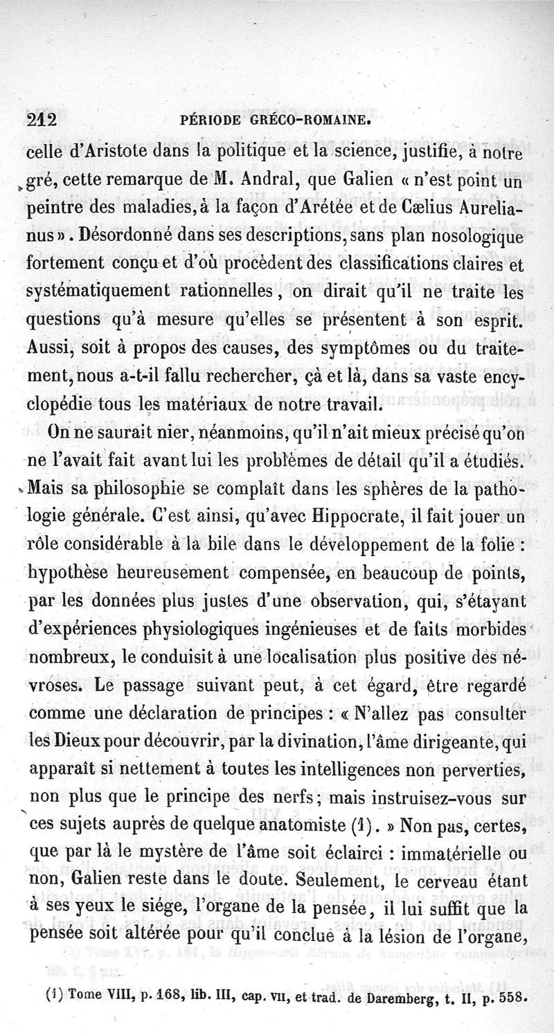 Etudes historiques sur l'aliénation mentale dans l'Antiquité ; première partie