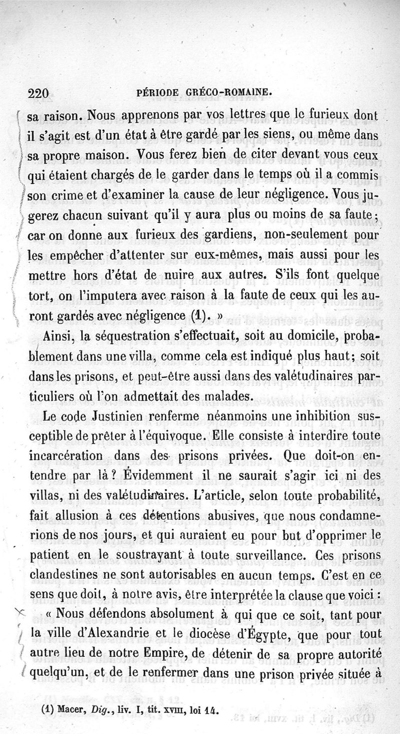 Etudes historiques sur l'aliénation mentale dans l'Antiquité ; première partie