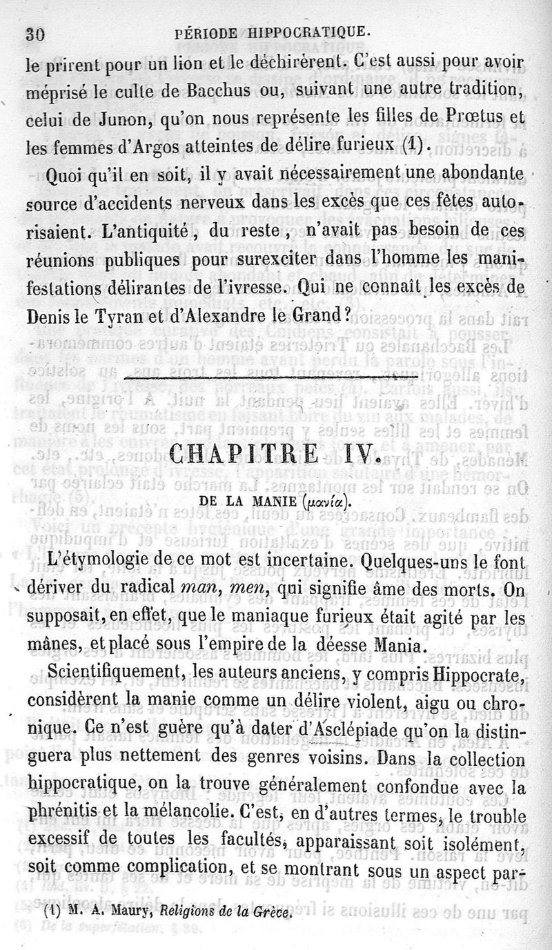 Etudes historiques sur l'aliénation mentale dans l'Antiquité ; première partie