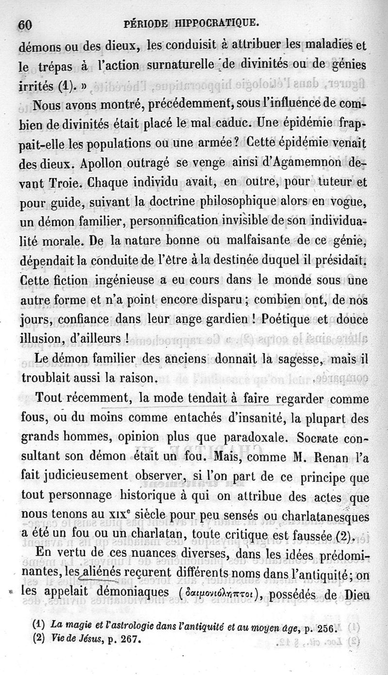 Etudes historiques sur l'aliénation mentale dans l'Antiquité ; première partie
