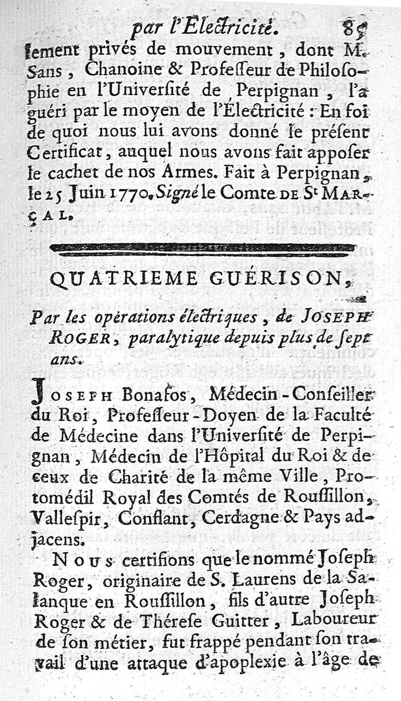 Guérison de la paralysie par l'électricité, ou cette expérience physique employée avec succès dans le traitement de cette maladie regardée jusques à présent comme incurable