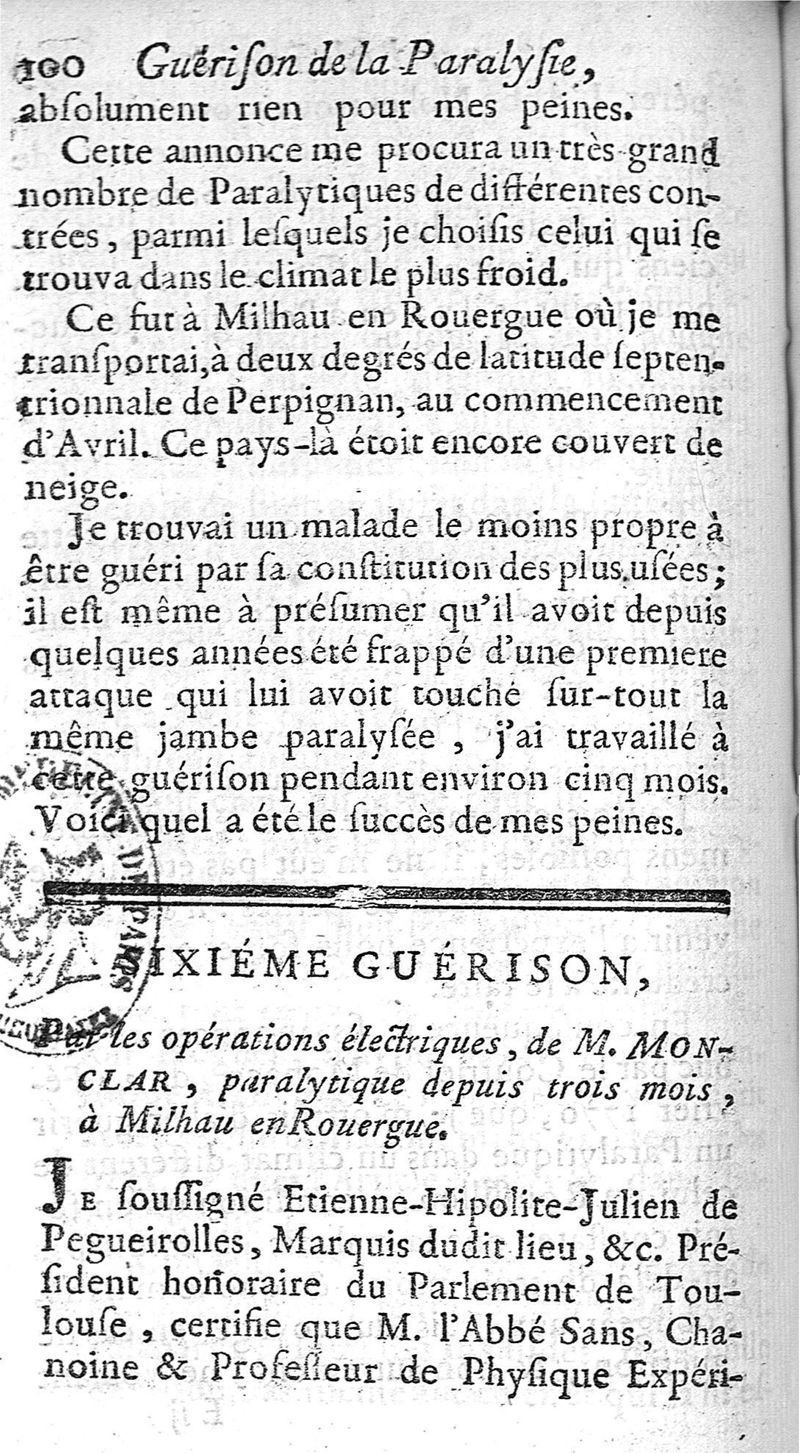Guérison de la paralysie par l'électricité, ou cette expérience physique employée avec succès dans le traitement de cette maladie regardée jusques à présent comme incurable