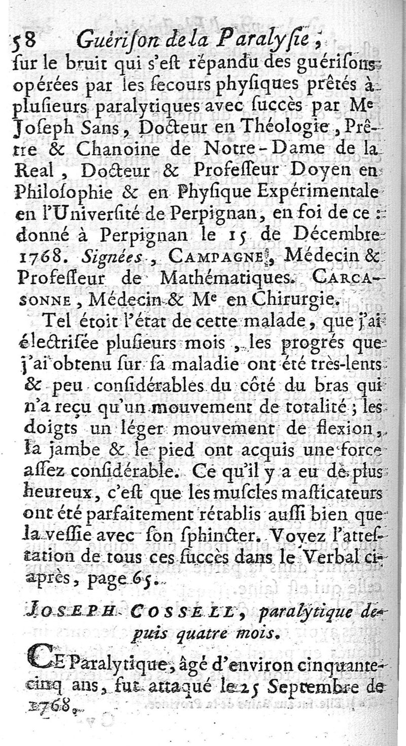 Guérison de la paralysie par l'électricité, ou cette expérience physique employée avec succès dans le traitement de cette maladie regardée jusques à présent comme incurable