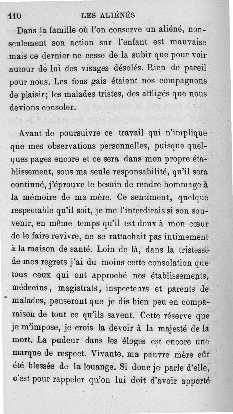 Les aliénés dans la famille et dans la maison de santé