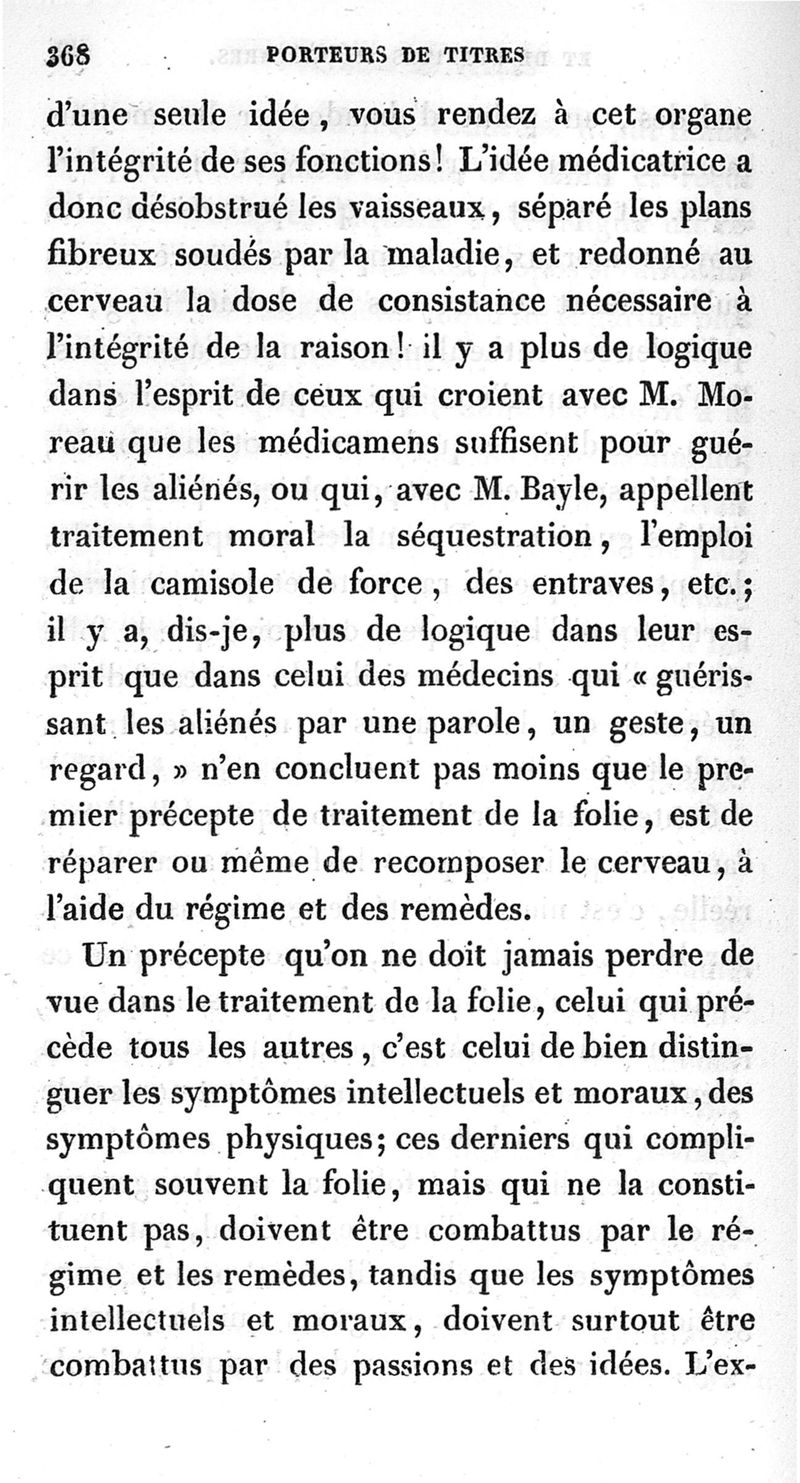 Du traitement moral de la folie