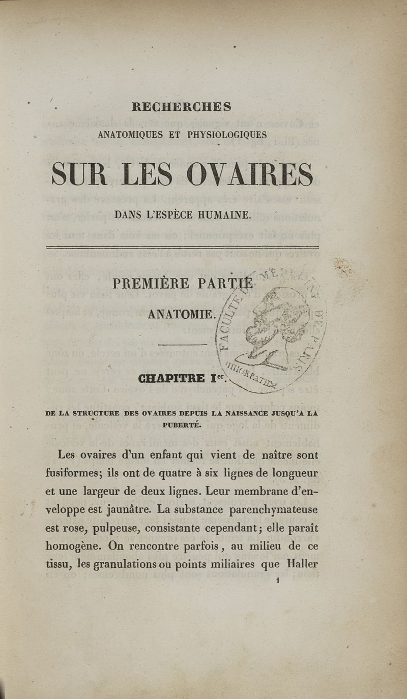 Recherches anatomiques et physiologiques sur les ovaires dans l'espèce humaine