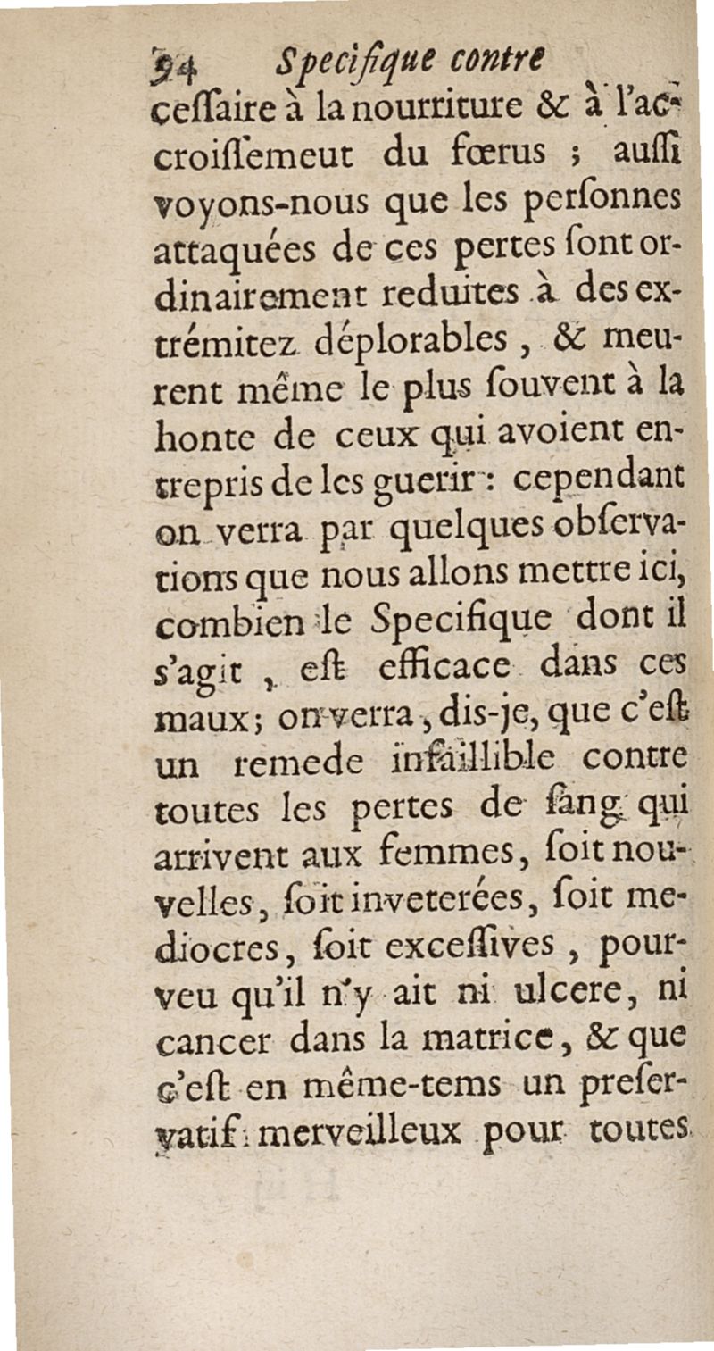 Traité des pertes de sang, de quelque espèce qu'ellles soient avec leur remede specifique, nouvellement découvert...accompagné de sa lettre sur la nature & la guerison du cancer