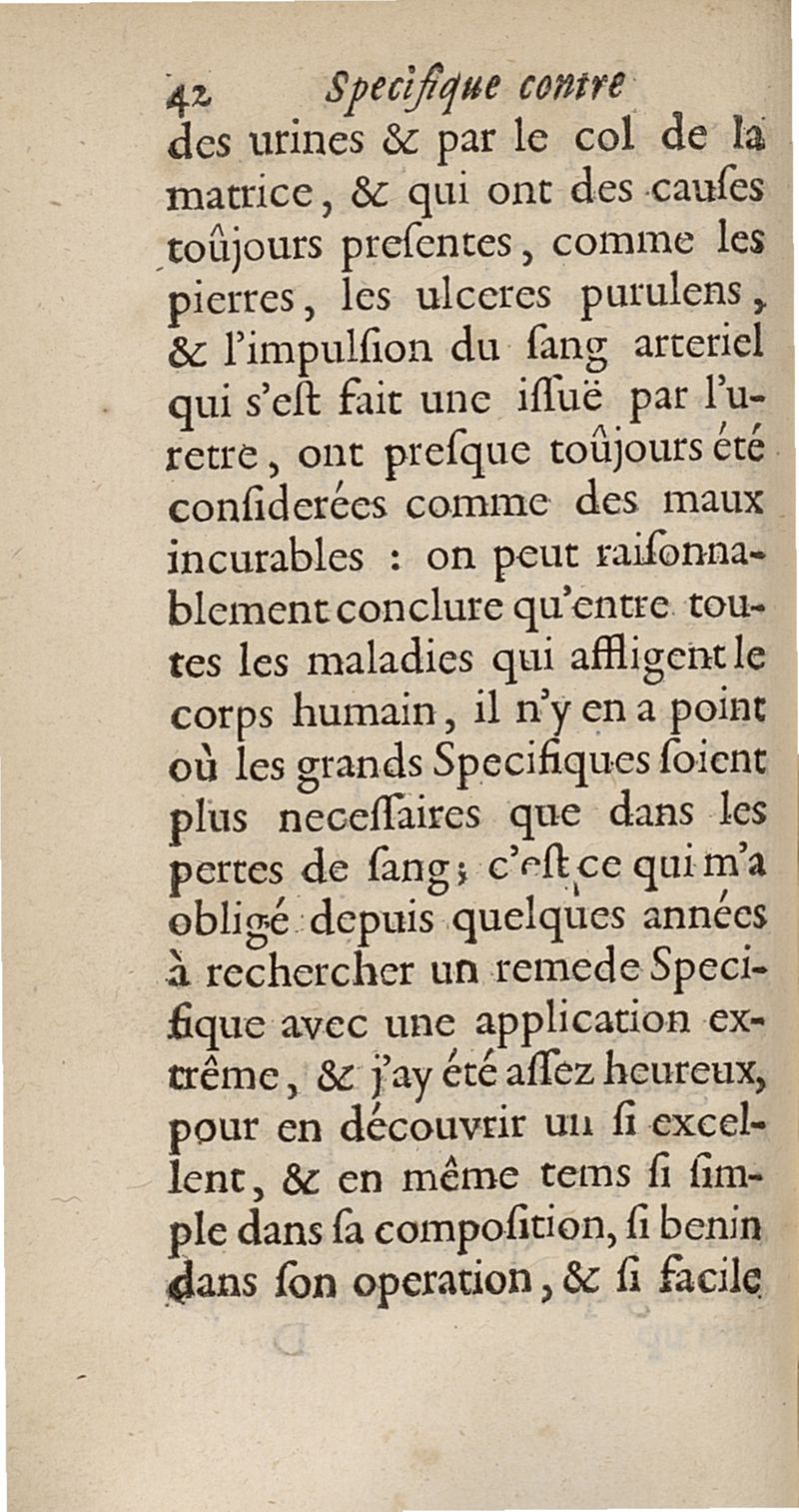 Traité des pertes de sang, de quelque espèce qu'ellles soient avec leur remede specifique, nouvellement découvert...accompagné de sa lettre sur la nature & la guerison du cancer
