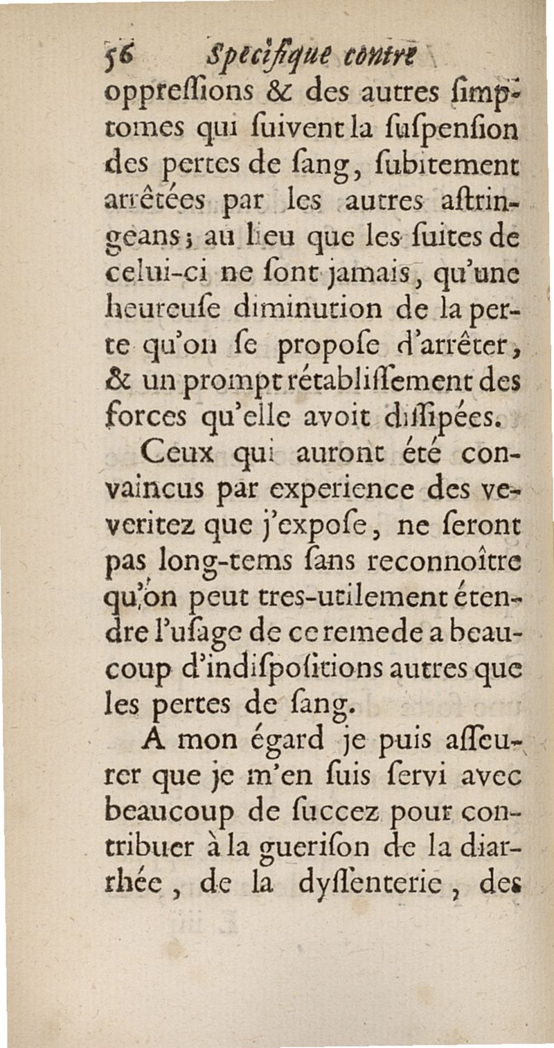 Traité des pertes de sang, de quelque espèce qu'ellles soient avec leur remede specifique, nouvellement découvert...accompagné de sa lettre sur la nature & la guerison du cancer