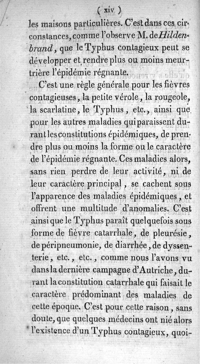 Du Typhus contagieux, suivi de quelques considérations sur les moyens d'arrêter ou d'éteindre la peste de guerre et autres maladies contagieuses, par J. Val. De Hildenbrand,... Traduit de l'allemand, avec un discours préliminaire, des notes et un fragment sur les collections d'eau dans le cerveau qui sont une terminaison fréquente du typhus, par Er. Horn, donné comme supplément, par J.-Charles Gasc