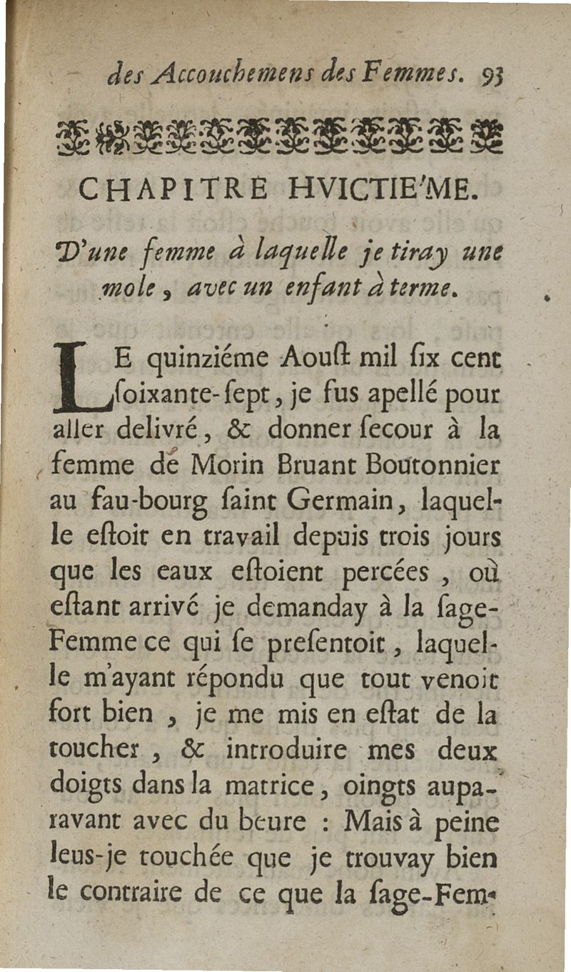 Observations sur la pratique des accouchemens naturels, contre nature et monstrueux. Avec une Methode tres-facile pour secourir les femmes en toutes sortes d'Accouchemens, sans se servir de Crochets ny d'aucun Instrument que de la seule main...