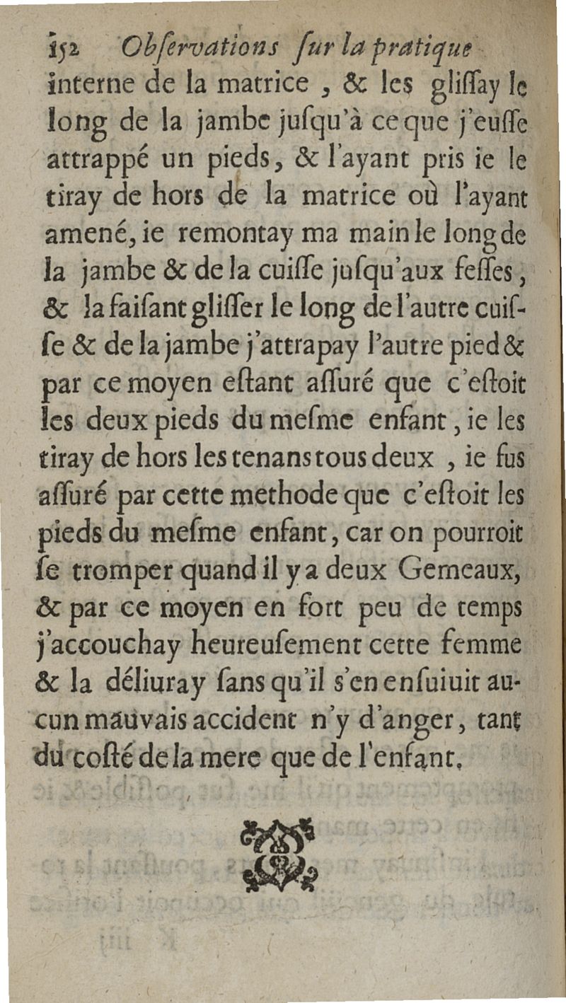 Observations sur la pratique des accouchemens naturels, contre nature et monstrueux. Avec une Methode tres-facile pour secourir les femmes en toutes sortes d'Accouchemens, sans se servir de Crochets ny d'aucun Instrument que de la seule main...