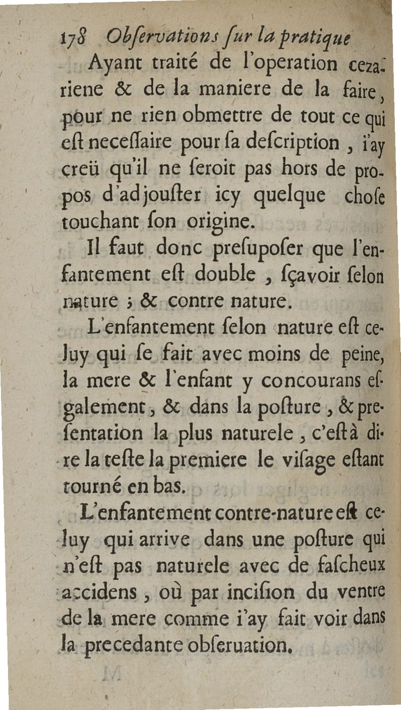 Observations sur la pratique des accouchemens naturels, contre nature et monstrueux. Avec une Methode tres-facile pour secourir les femmes en toutes sortes d'Accouchemens, sans se servir de Crochets ny d'aucun Instrument que de la seule main...