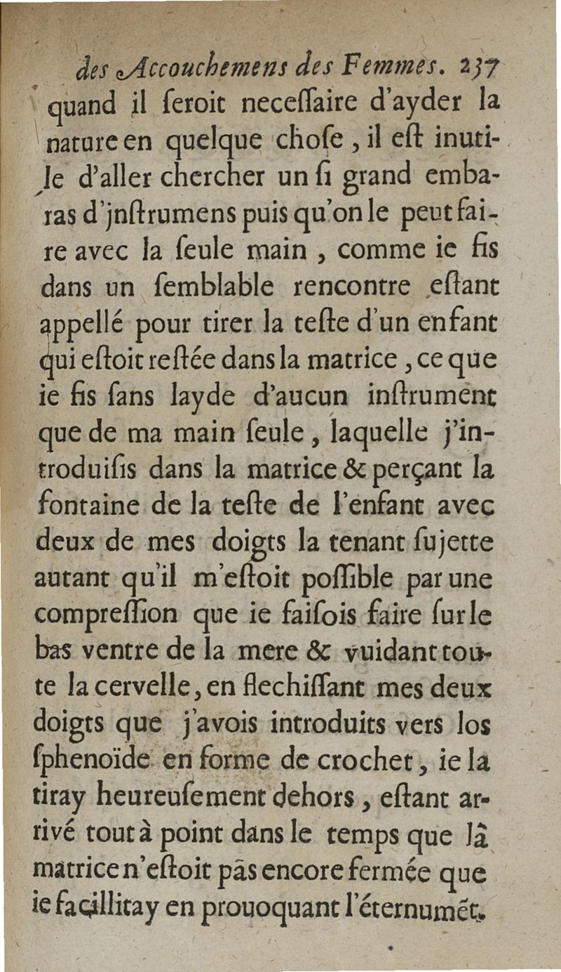 Observations sur la pratique des accouchemens naturels, contre nature et monstrueux. Avec une Methode tres-facile pour secourir les femmes en toutes sortes d'Accouchemens, sans se servir de Crochets ny d'aucun Instrument que de la seule main...