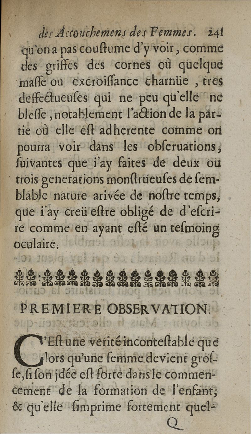 Observations sur la pratique des accouchemens naturels, contre nature et monstrueux. Avec une Methode tres-facile pour secourir les femmes en toutes sortes d'Accouchemens, sans se servir de Crochets ny d'aucun Instrument que de la seule main...