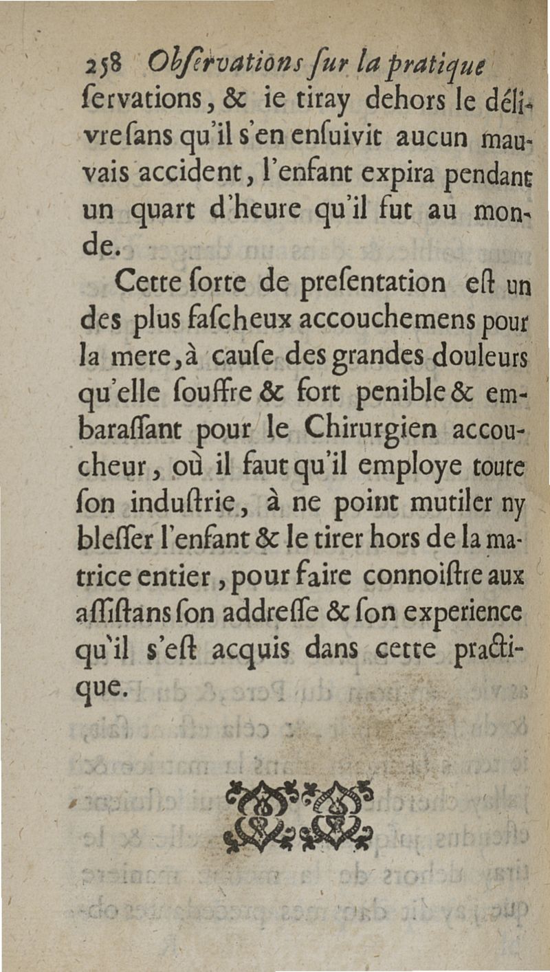 Observations sur la pratique des accouchemens naturels, contre nature et monstrueux. Avec une Methode tres-facile pour secourir les femmes en toutes sortes d'Accouchemens, sans se servir de Crochets ny d'aucun Instrument que de la seule main...