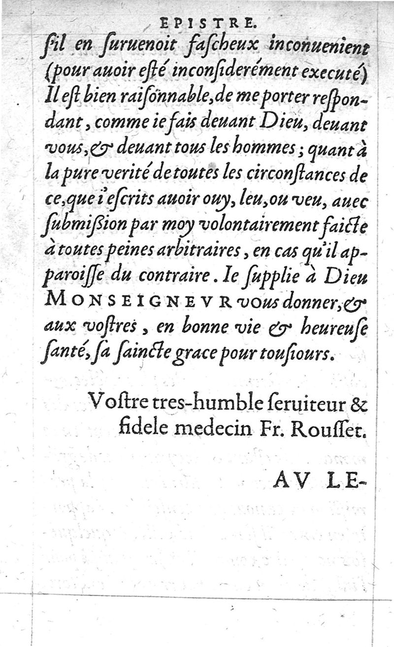 Traitte nouveau de l’Hysterotomotokie,ou Enfantement Caesarien. Qui est Extraction de l’enfant par incision laterale du ventre, et matrice de la femme grosse ne pouvant autrement accoucher. Et ce sans prejudicier à la vie de l’un, ny de l’autre ; ny empescher la fœcondité maternelle par après. Par Françoys Rousset Medecin,