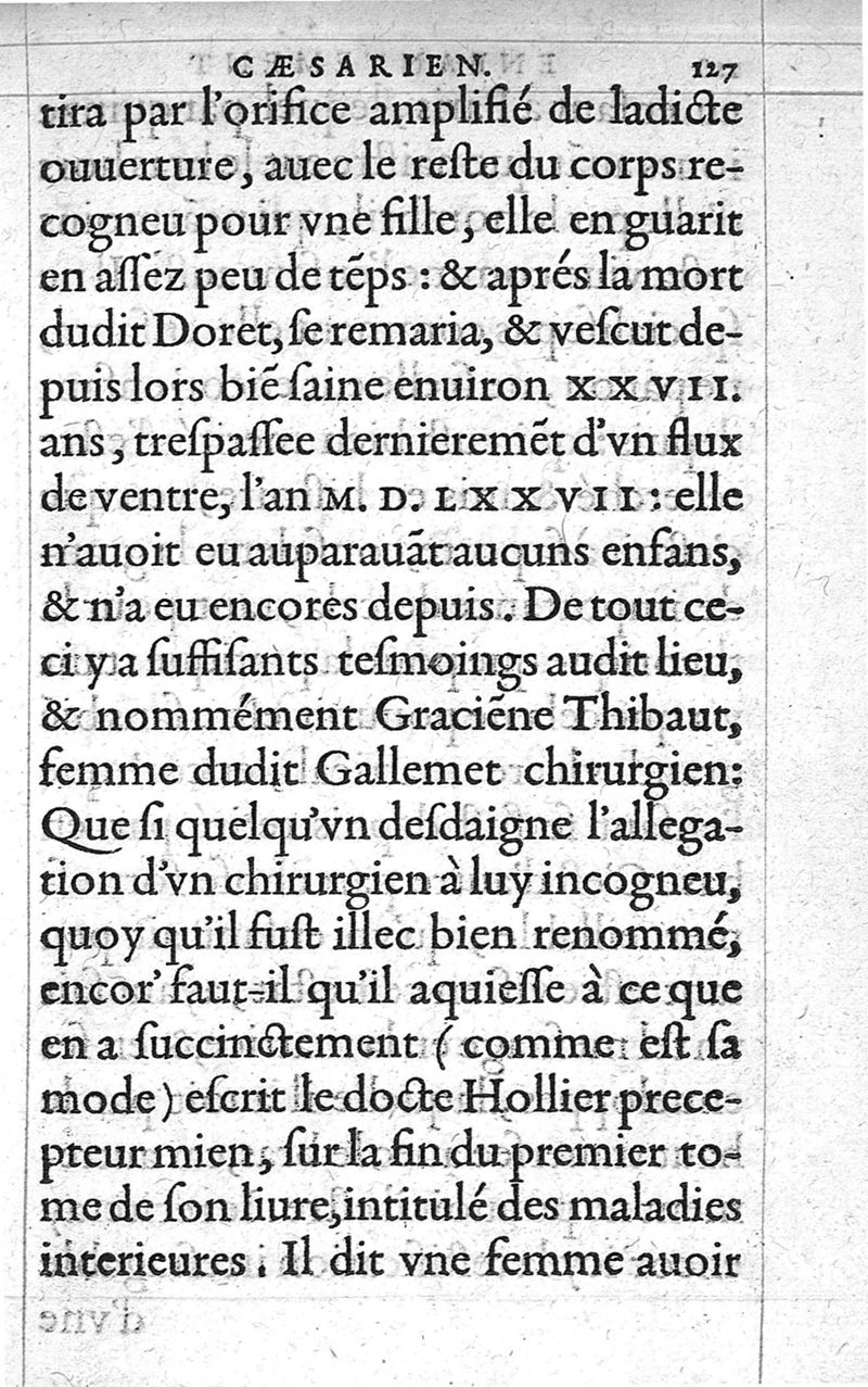 Traitte nouveau de l’Hysterotomotokie,ou Enfantement Caesarien. Qui est Extraction de l’enfant par incision laterale du ventre, et matrice de la femme grosse ne pouvant autrement accoucher. Et ce sans prejudicier à la vie de l’un, ny de l’autre ; ny empescher la fœcondité maternelle par après. Par Françoys Rousset Medecin,