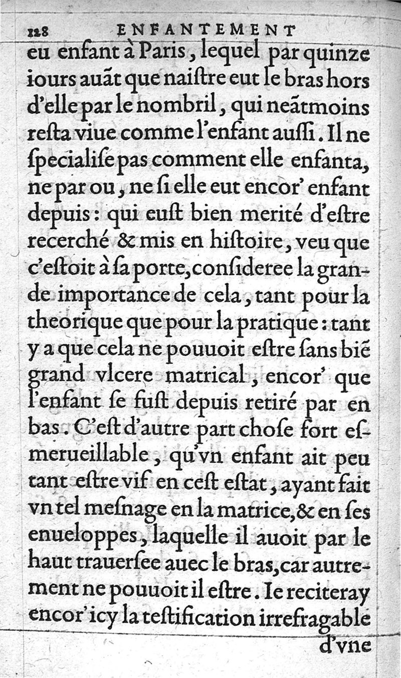 Traitte nouveau de l’Hysterotomotokie,ou Enfantement Caesarien. Qui est Extraction de l’enfant par incision laterale du ventre, et matrice de la femme grosse ne pouvant autrement accoucher. Et ce sans prejudicier à la vie de l’un, ny de l’autre ; ny empescher la fœcondité maternelle par après. Par Françoys Rousset Medecin,