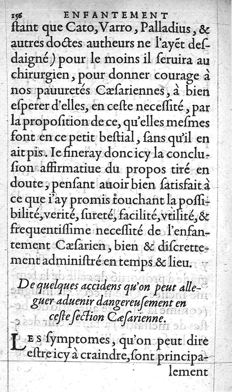 Traitte nouveau de l’Hysterotomotokie,ou Enfantement Caesarien. Qui est Extraction de l’enfant par incision laterale du ventre, et matrice de la femme grosse ne pouvant autrement accoucher. Et ce sans prejudicier à la vie de l’un, ny de l’autre ; ny empescher la fœcondité maternelle par après. Par Françoys Rousset Medecin,