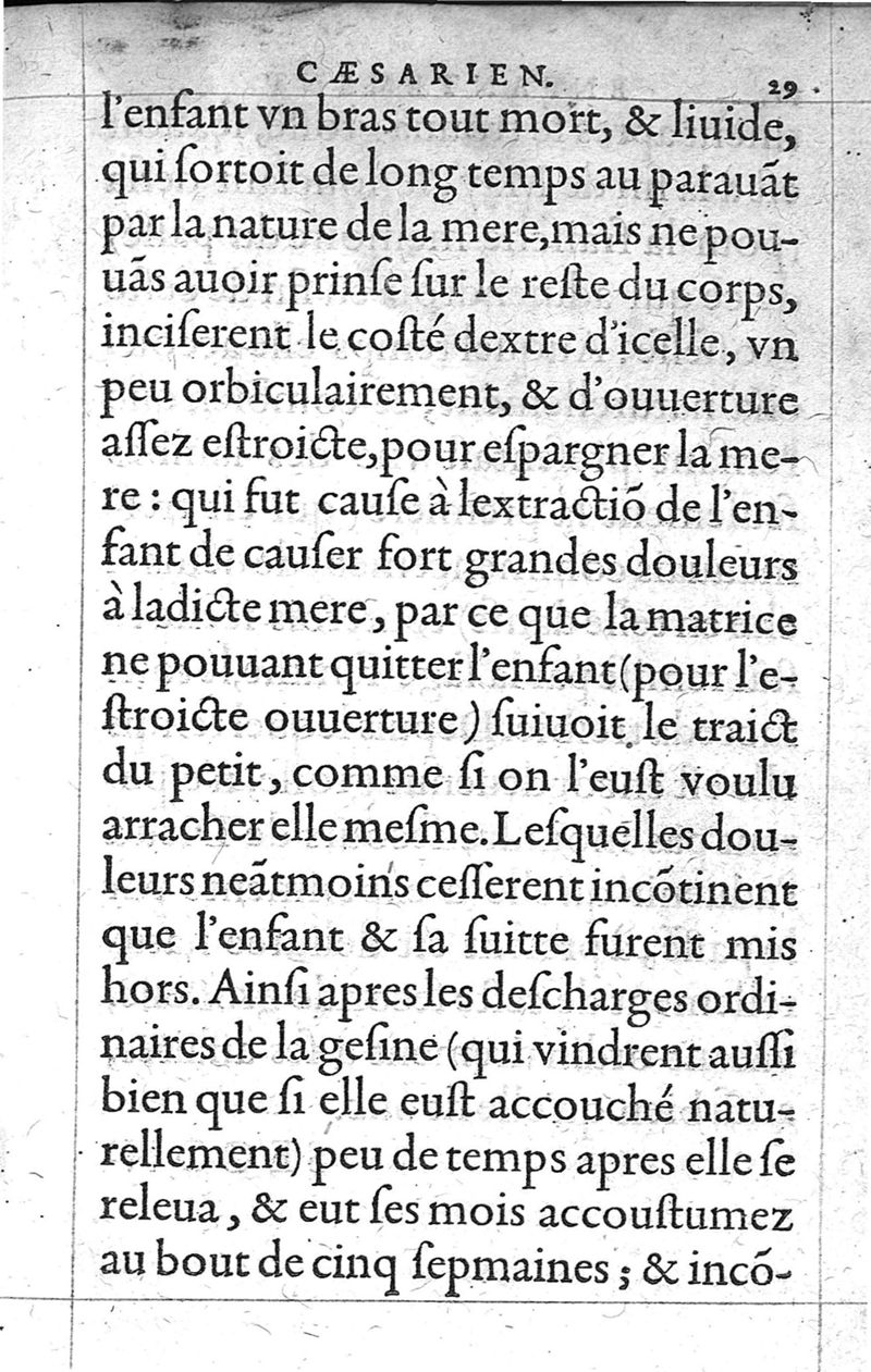 Traitte nouveau de l’Hysterotomotokie,ou Enfantement Caesarien. Qui est Extraction de l’enfant par incision laterale du ventre, et matrice de la femme grosse ne pouvant autrement accoucher. Et ce sans prejudicier à la vie de l’un, ny de l’autre ; ny empescher la fœcondité maternelle par après. Par Françoys Rousset Medecin,