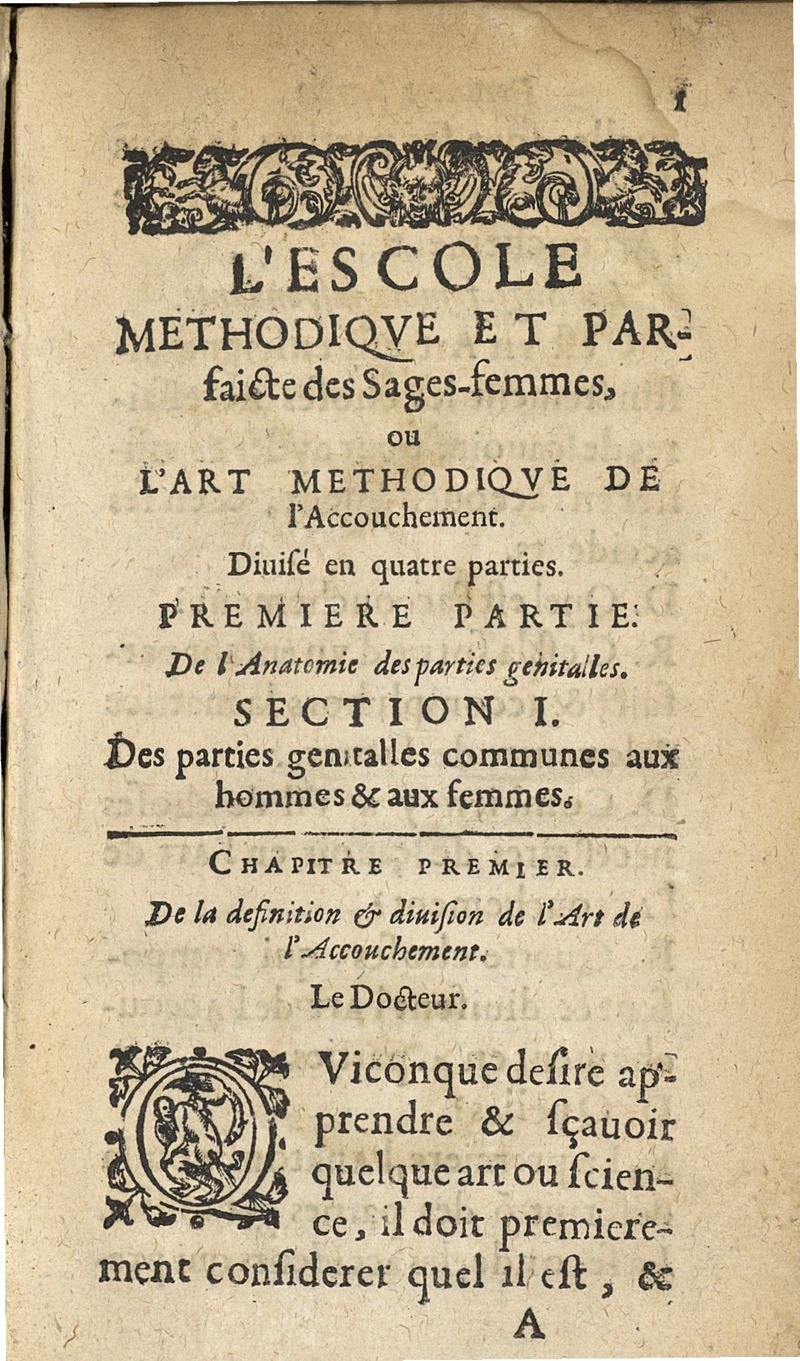L'echole methodique et parfaite des sages-femmes, ou l'art de l'accouchement divisee en quatre parties...