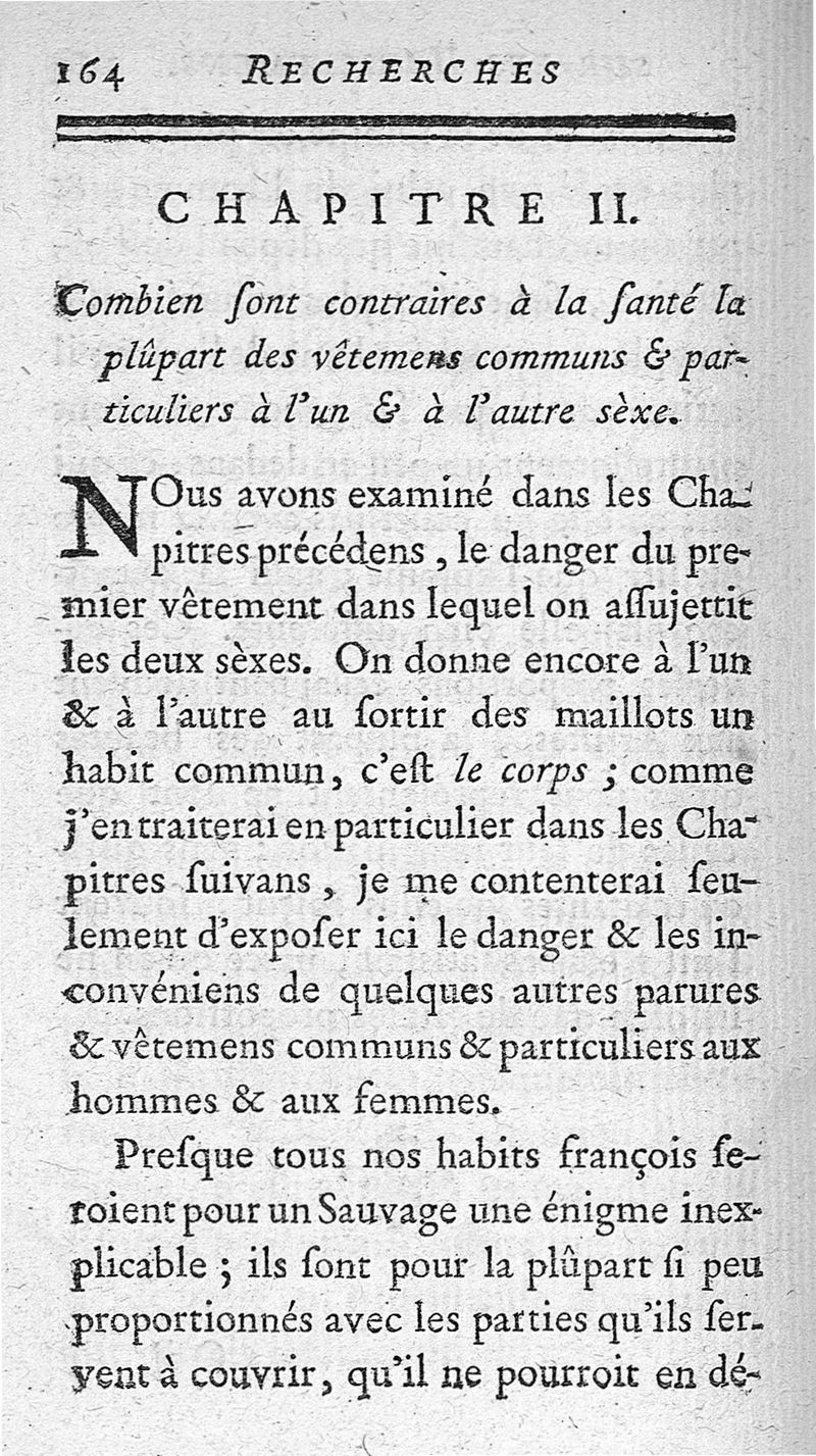 Recherches sur les habillemens des femmes et des enfans, ou Examen de la maniere dont il faut vêtir l'un et l'autre Sèxe.