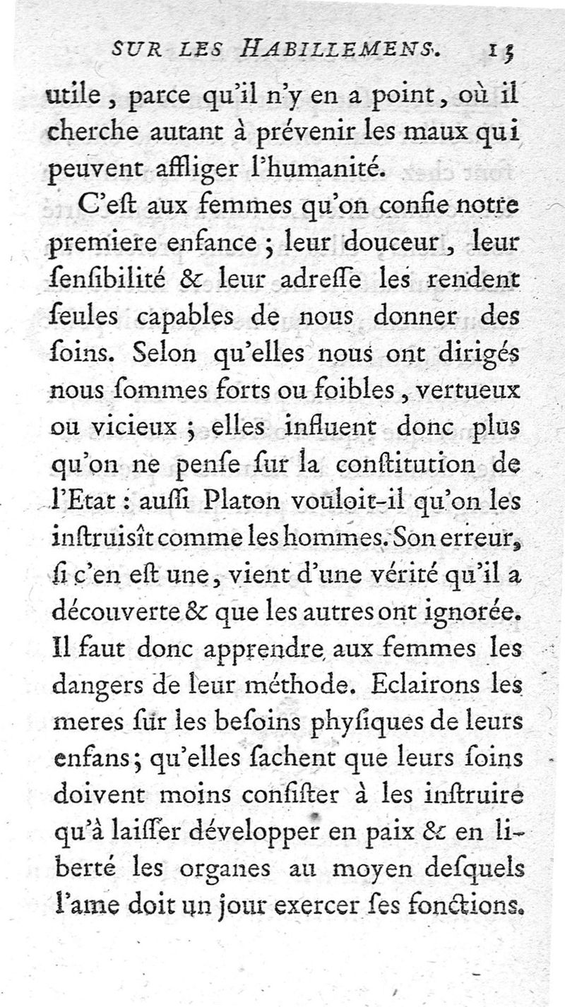 Recherches sur les habillemens des femmes et des enfans, ou Examen de la maniere dont il faut vêtir l'un et l'autre Sèxe.