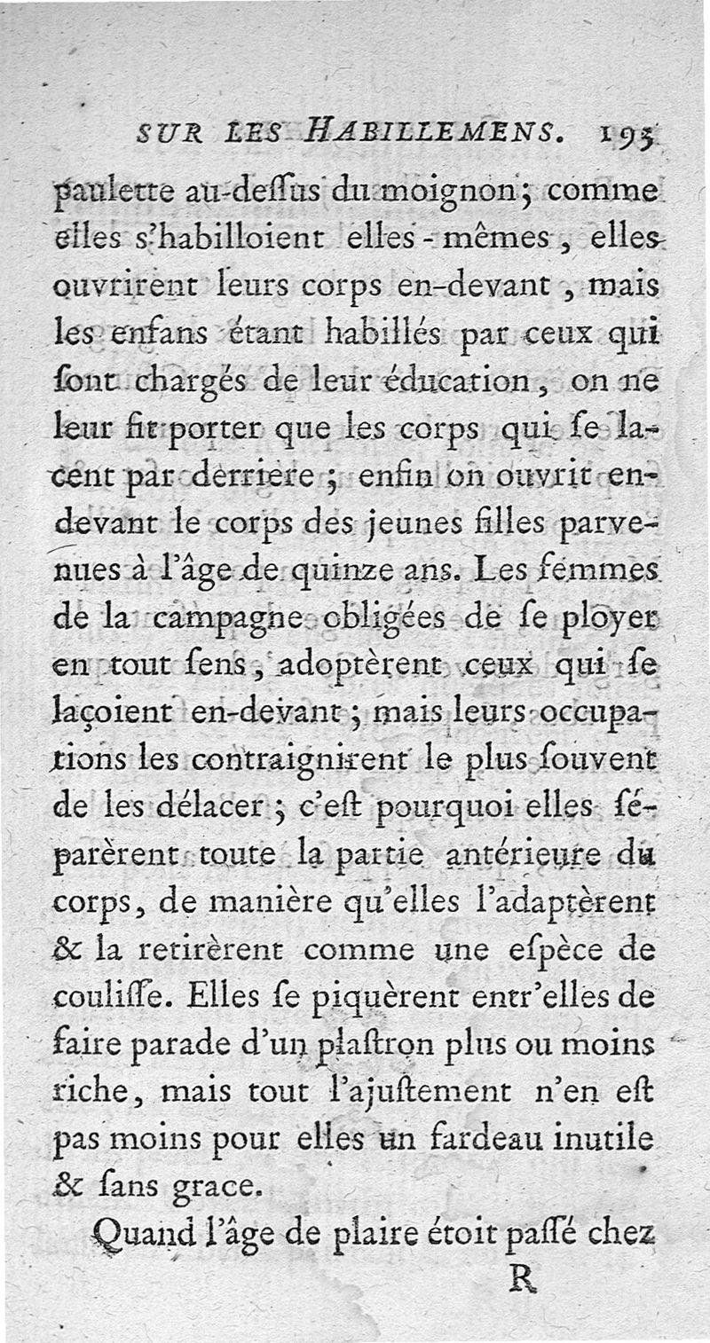 Recherches sur les habillemens des femmes et des enfans, ou Examen de la maniere dont il faut vêtir l'un et l'autre Sèxe.