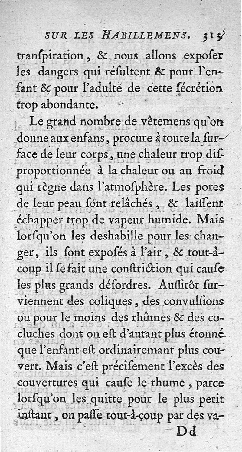 Recherches sur les habillemens des femmes et des enfans, ou Examen de la maniere dont il faut vêtir l'un et l'autre Sèxe.