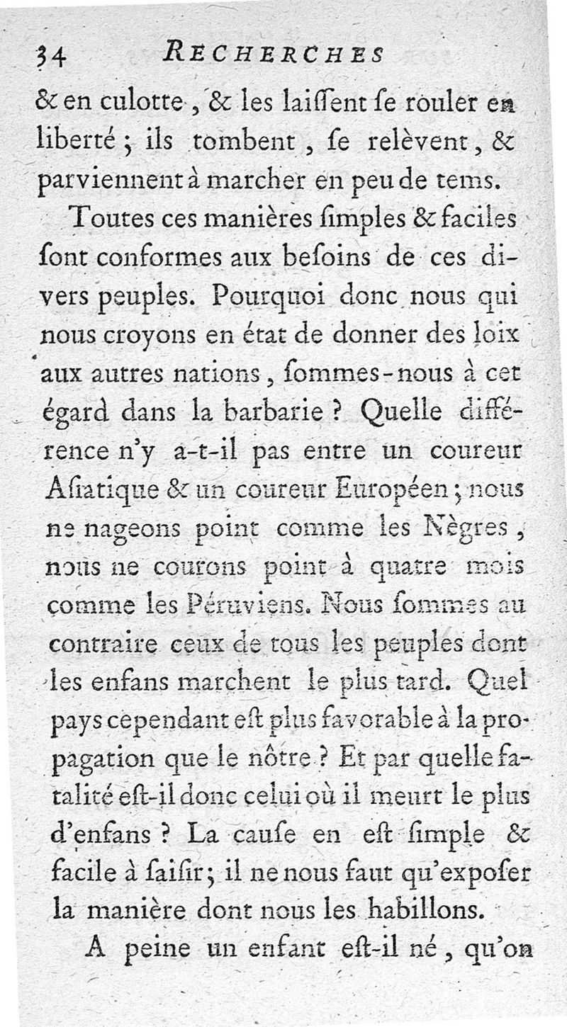 Recherches sur les habillemens des femmes et des enfans, ou Examen de la maniere dont il faut vêtir l'un et l'autre Sèxe.