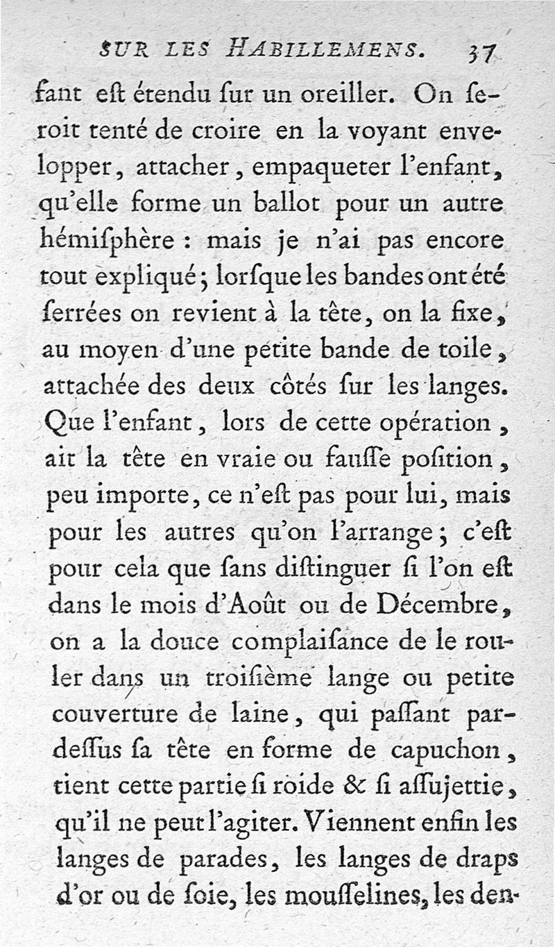 Recherches sur les habillemens des femmes et des enfans, ou Examen de la maniere dont il faut vêtir l'un et l'autre Sèxe.