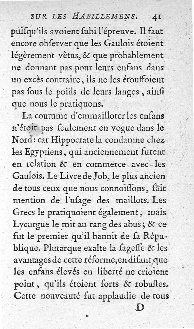 Recherches sur les habillemens des femmes et des enfans, ou Examen de la maniere dont il faut vêtir l'un et l'autre Sèxe.