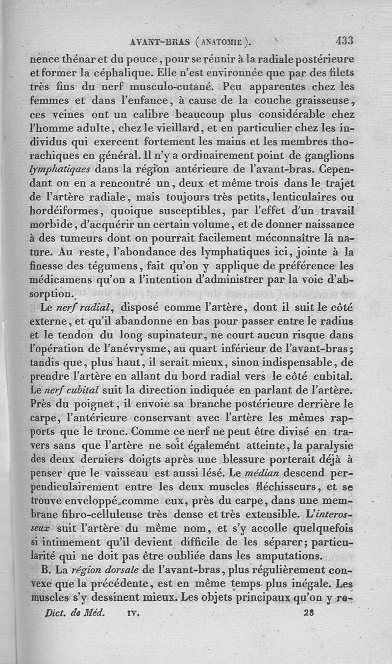Dictionnaire de médecine ou répertoire général des sciences médicales considérées sous le rapport théorique et pratique par MM. Adelon, Béclard, Bérard et al ; 2è éd. Tome 4