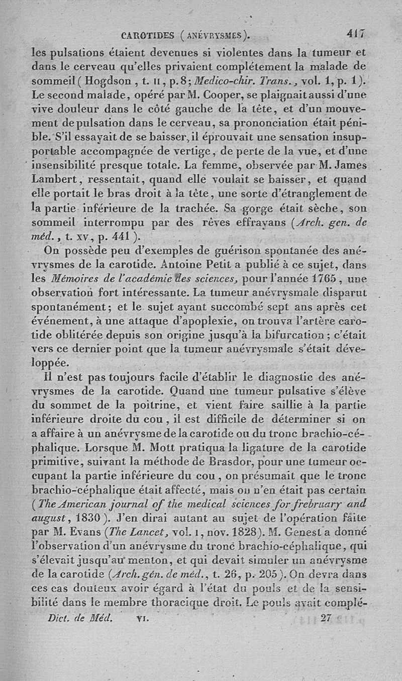 Dictionnaire de médecine ou répertoire général des sciences médicales considérées sous le rapport théorique et pratique par MM. Adelon, Béclard, Bérard et al ; 2è éd. Tome 6