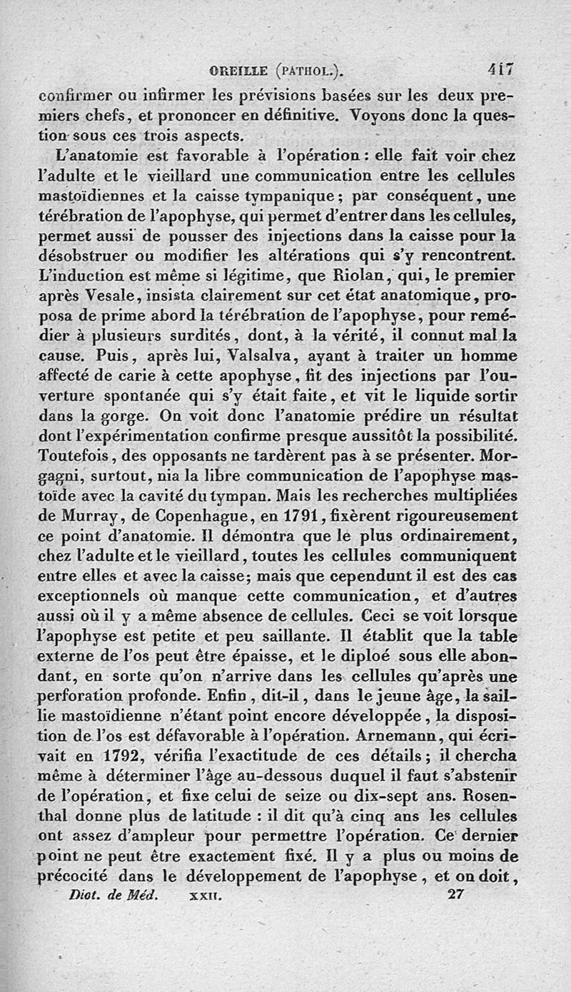 Dictionnaire de médecine ou répertoire général des sciences médicales considérées sous le rapport théorique et pratique par MM. Adelon, Béclard, Bérard et al ; 2è éd. Tome 22