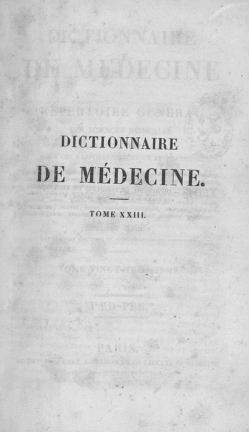 Dictionnaire de médecine ou répertoire général des sciences médicales considérées sous le rapport théorique et pratique par MM. Adelon, Béclard, Bérard et al ; 2è éd. Tome 23