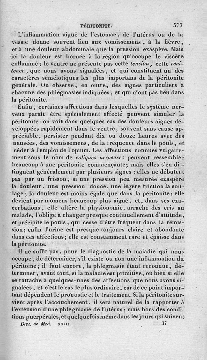 Dictionnaire de médecine ou répertoire général des sciences médicales considérées sous le rapport théorique et pratique par MM. Adelon, Béclard, Bérard et al ; 2è éd. Tome 23