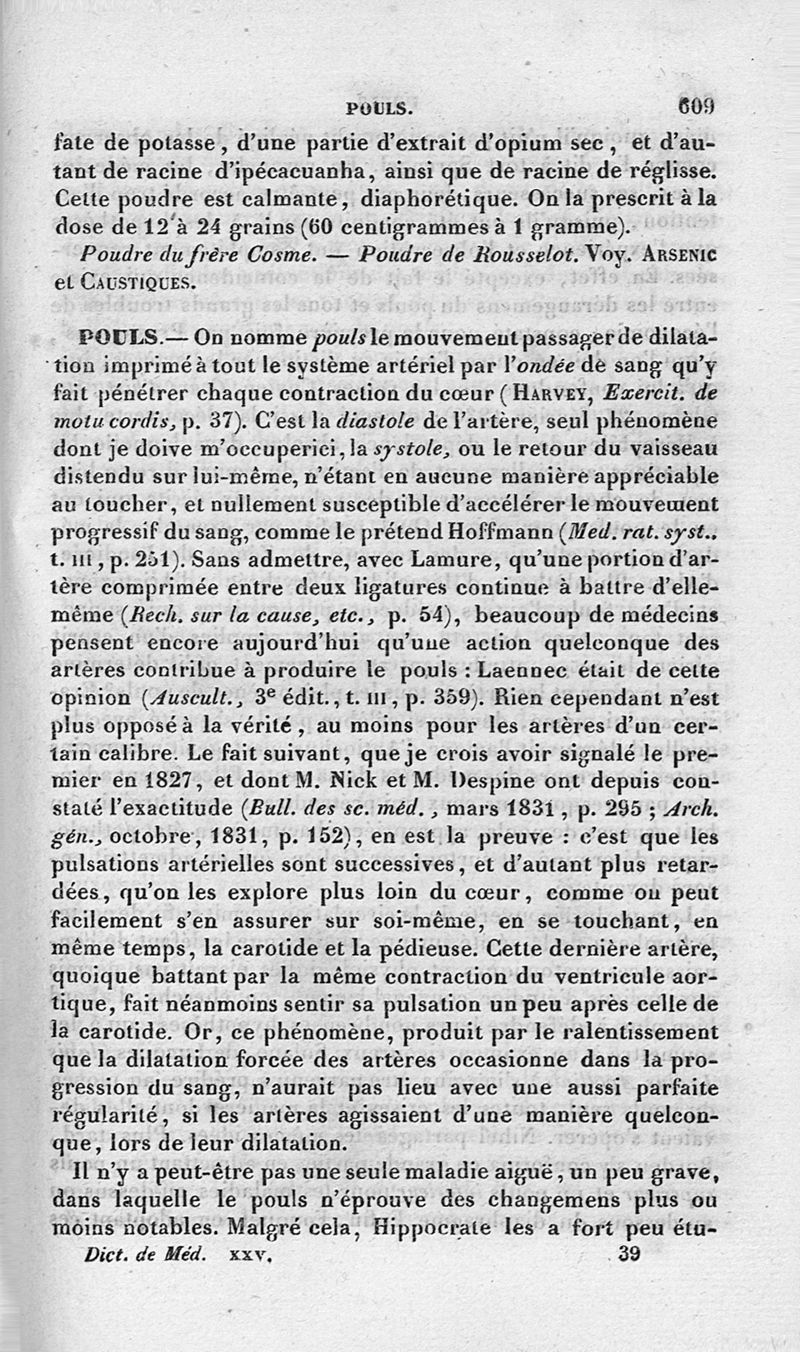 Dictionnaire de médecine ou répertoire général des sciences médicales considérées sous le rapport théorique et pratique par MM. Adelon, Béclard, Bérard et al ; 2è éd. Tome 25