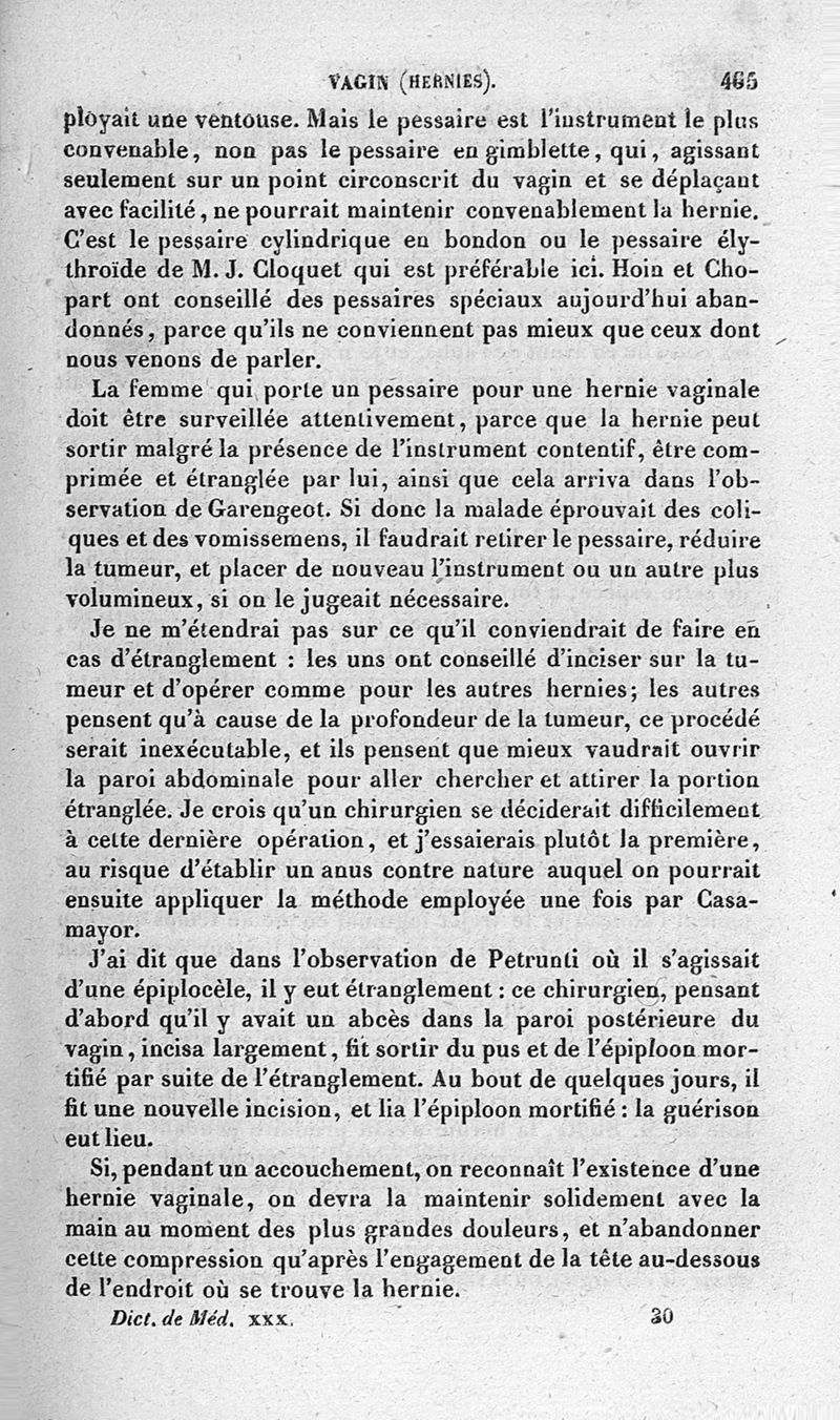 Dictionnaire de médecine ou répertoire général des sciences médicales considérées sous le rapport théorique et pratique par MM. Adelon, Béclard, Bérard et al ; 2è éd. Tome 30