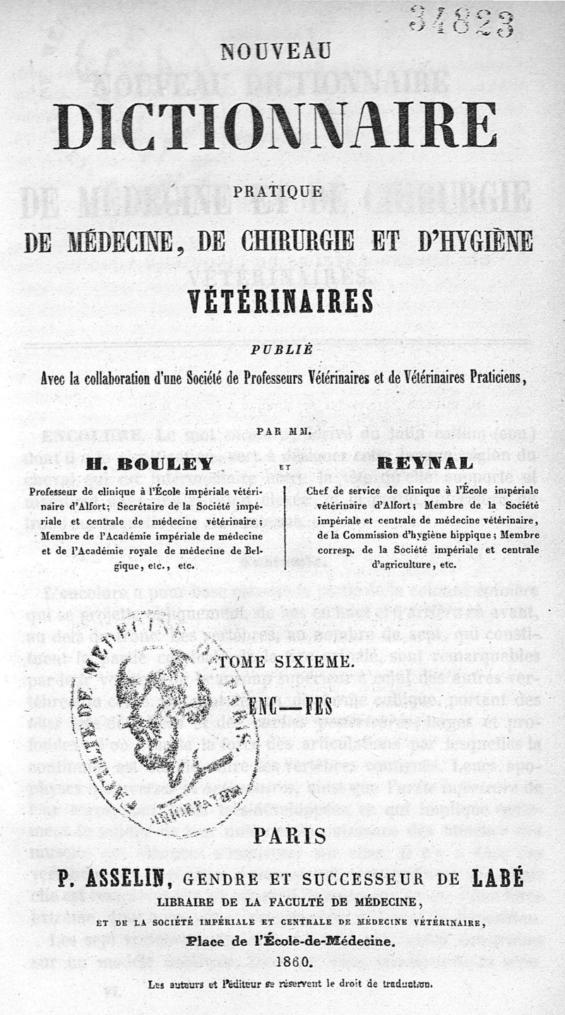 Nouveau dictionnaire pratique de médecine, de chirurgie et d'hygiène vétérinaires / vol. 6 (ENC - FES)