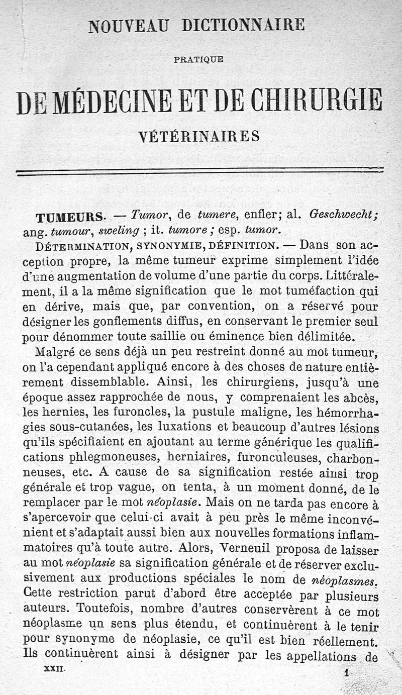 Nouveau dictionnaire pratique de médecine, de chirurgie et d'hygiène vétérinaires / vol. 22 (TUMEURS - ZOOTECHNIE)