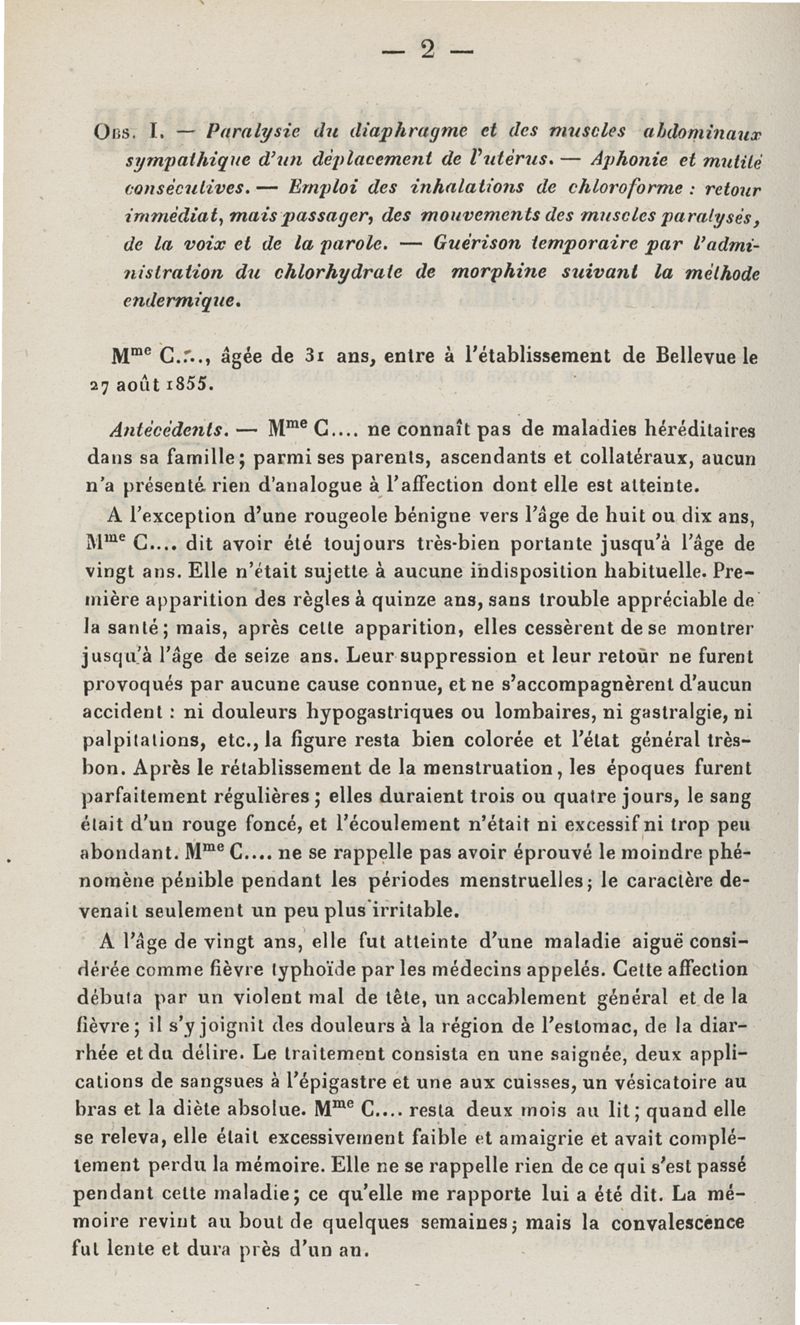 De l'emploi du chloroforme et des narcotiques comme agents thérapeutiques et comme moyens de diagnostic dans certaines paralysies