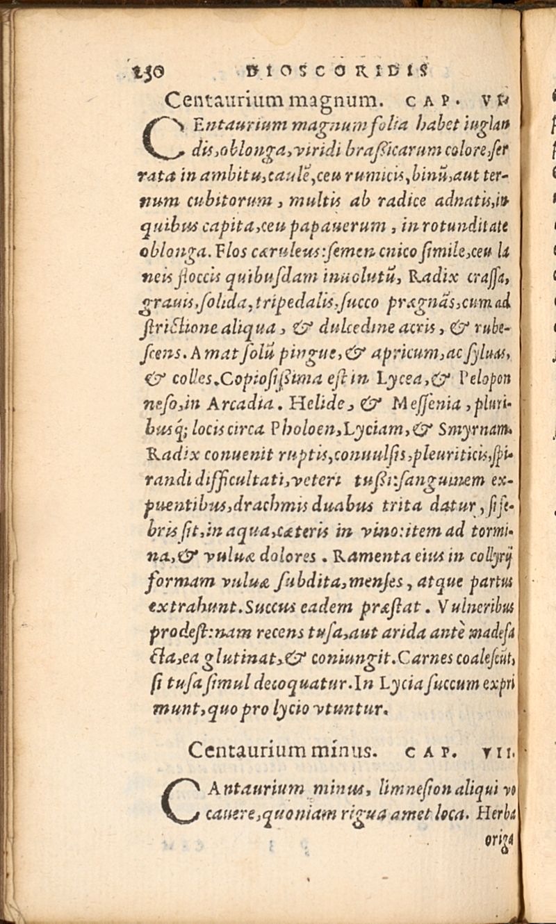 Pedacii Dioscoridis Anazarbei, de materia medica libri sex, Innumeris locis ab Andrea Matthiolo emendati, ac restituti. Accesserunt tres Indices: vnus propriorum nominum, alter nothorum, tertius remediorum, Isque maximi vsus.