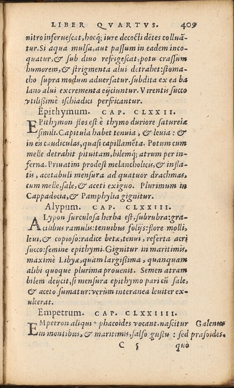 Pedacii Dioscoridis Anazarbei, de materia medica libri sex, Innumeris locis ab Andrea Matthiolo emendati, ac restituti. Accesserunt tres Indices: vnus propriorum nominum, alter nothorum, tertius remediorum, Isque maximi vsus.