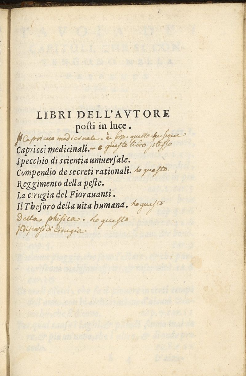 De Capricci medicinali libri quattro. Di nuovo dall'istesso autore in molti luoghi, di secreti importantissimi, ampliati. Con molta diligenza revisti, corretti, & ristampati