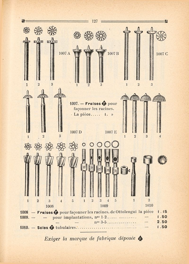 Fabrique et dépôt de dents minérales : instruments, outils et fournitures pour dentistes