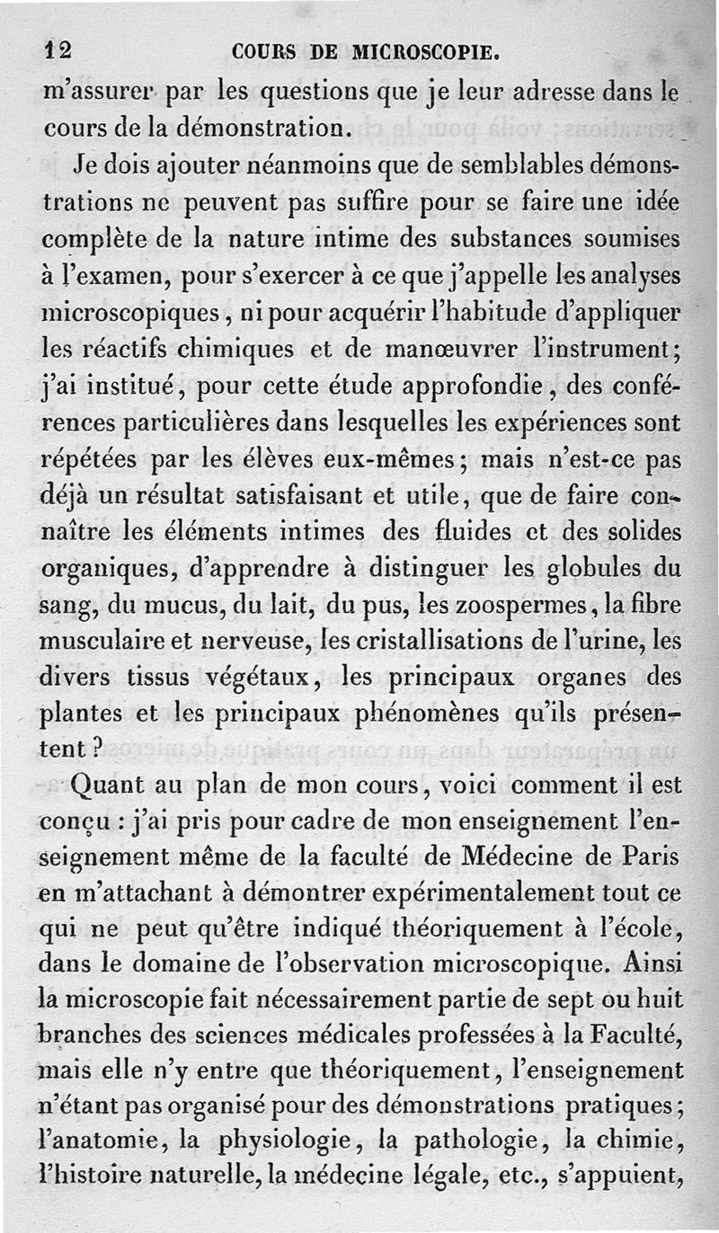 Cours de microscopie complémentaire des études médicales. Anatomie microscopique et physiologique des fluides de l'économie